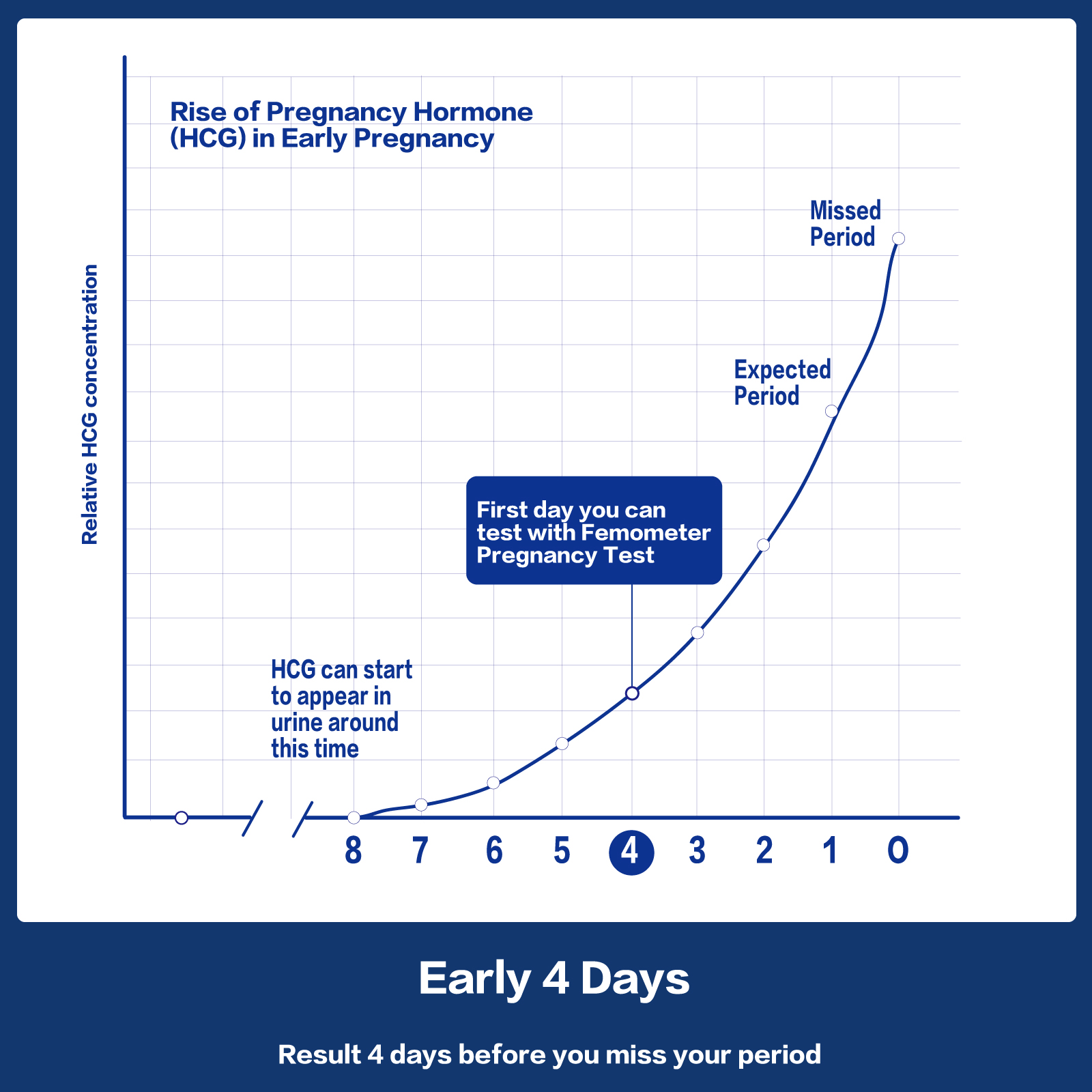 But if you are testing early, you should be aware that even if your result is not pregnant, you may still be pregnant. This is because levels of hCG vary from woman to woman and there may not yet be enough hormone for the test to give a positive result. HCG levels rise rapidly in early pregnancy, as shown in the graph below, meaning that if you test again on the day of your expected period, your result (whether positive or negative) will be over 99.99% accurate.