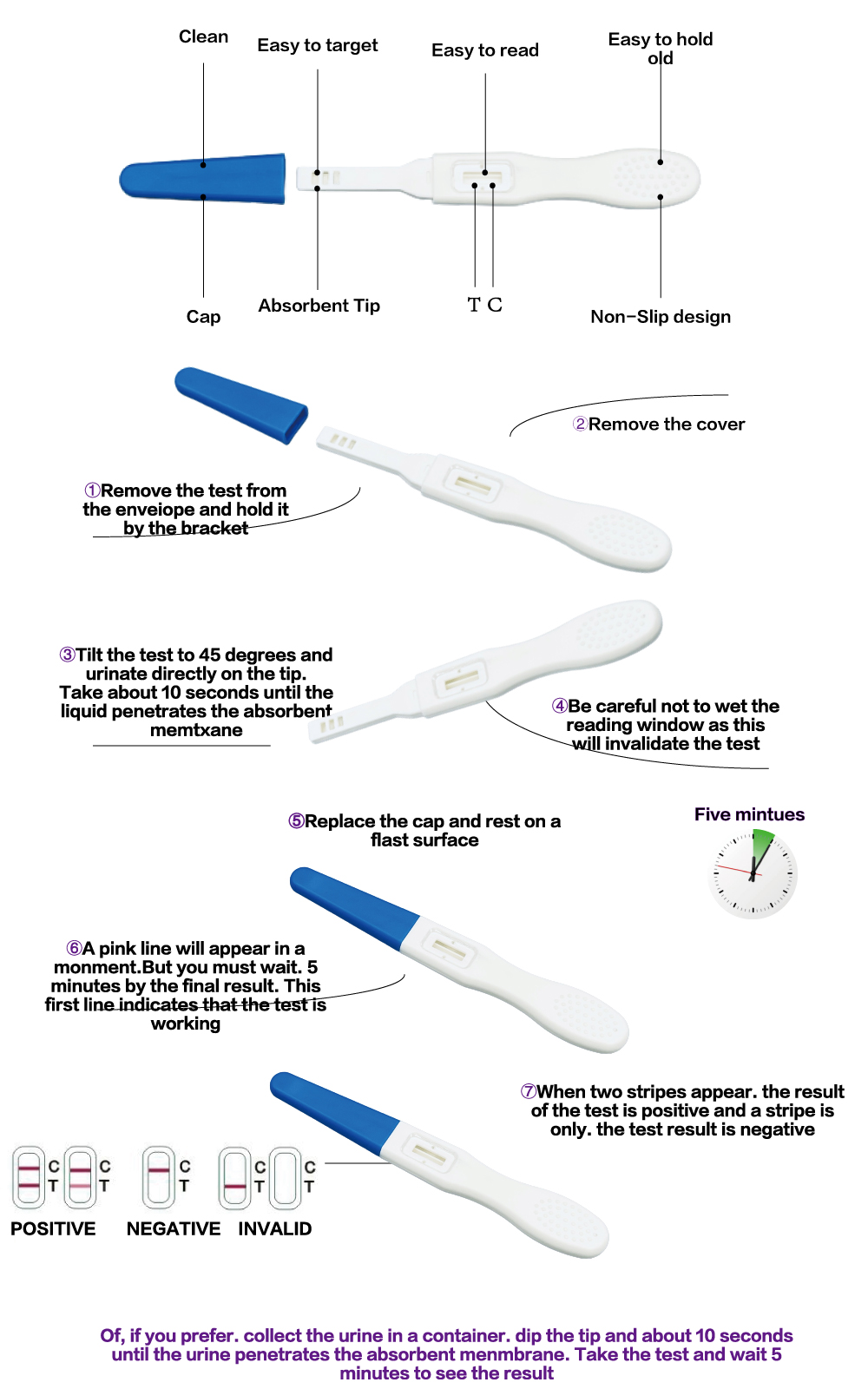 One Step HCG Pregnancy Test is a self-performing immunoassay designed for the qualitative determination of human chorionic gonadotropin (HCG) in urine for early detection of pregnancy.