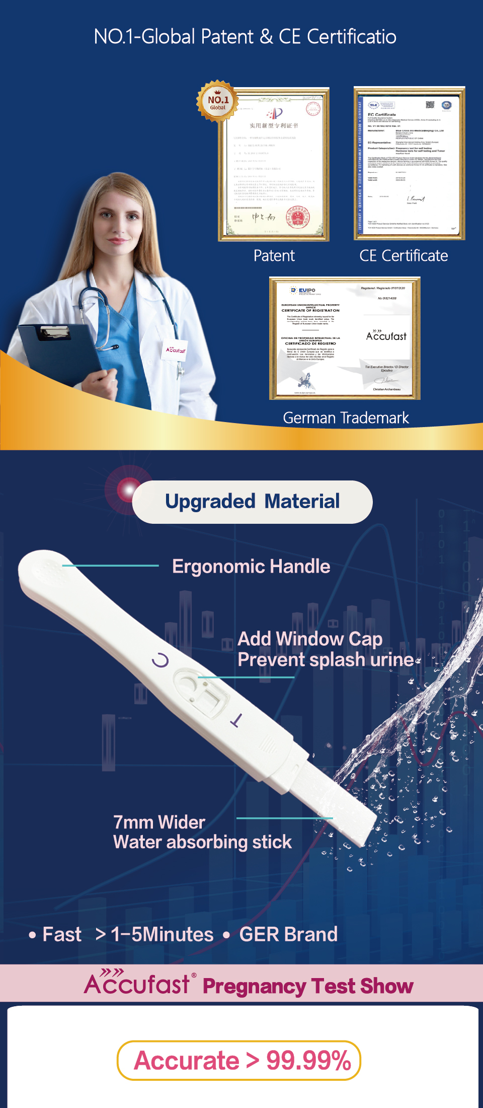 >>99% Accuracy - Contracted suppliers to European laboratories and hospitals, data by labors and studies shows our tests are 99.99% accurate at detecting HCG levels in urine, give you more reliability.